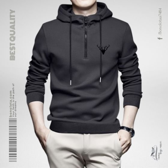 Men’s Winter Cotton Long Sleeve Black Hoodie